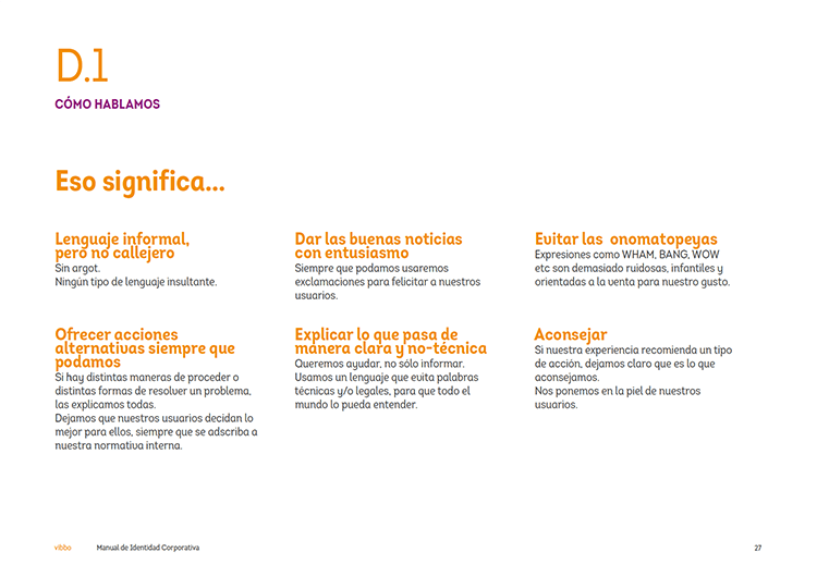 Vale la pena hablar del estilo verbal, pues es un aspecto de la identidad al que a menudo no se le presta suficiente atención. En esos casos, el tono o la expresión verbal queda a expensas de cada campaña o de la agencia que la lleva a cabo, cuando debe tener una proyección mucho mayor. Las marcas deben disponer de un estilo verbal y de escritura que defina de qué manera habla, escribe y comunica la marca.